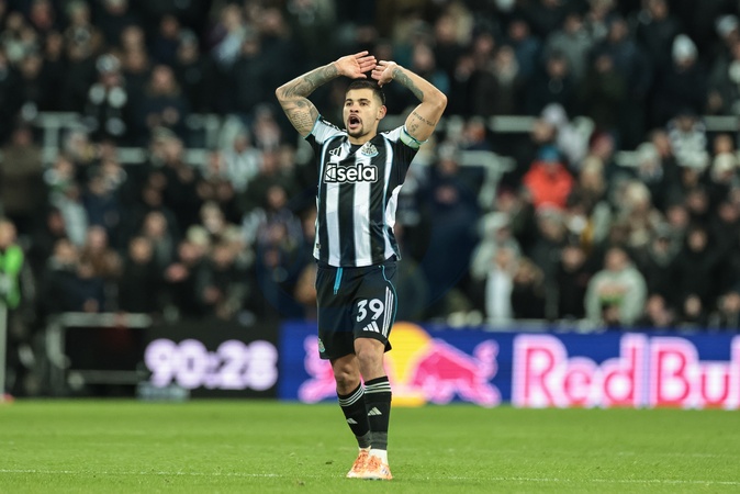 Bruno Guimaraes of Newcastle Untied celebrates his goal to make it 3-3 during the Premier League match Newcastle United vs Leeds United at St. James's Park, Newcastle, United Kingdom, 7th January 2026, Credit:Mark Cosgrove/News Images / Avalon