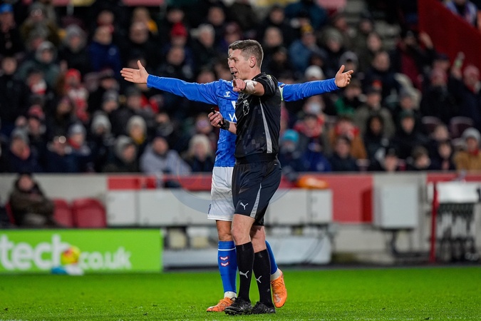 Referee Matthew Donohue awards a penalty for Sunderland during the Premier League match Brentford vs Sunderland at The Gtech Community Stadium, London, United Kingdom, 7th January 2026, Credit:Maynard Manyowa/News Images / Avalon