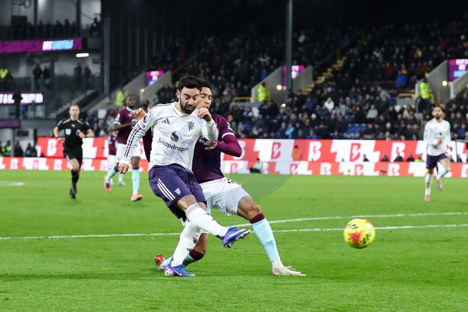 Bruno Fernandes of Manchester United has shot on goal during the Premier League match Burnley vs Manchester United at Turf Moor, Burnley, United Kingdom, 7th January 2026, Credit:Jorge Horsted/News Images / Avalon