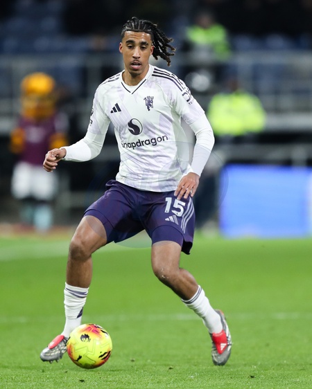 Leny Yoro of Manchester United with ball at his feet during the Premier League match Burnley vs Manchester United at Turf Moor, Burnley, United Kingdom, 7th January 2026, Credit:Jorge Horsted/News Images / Avalon