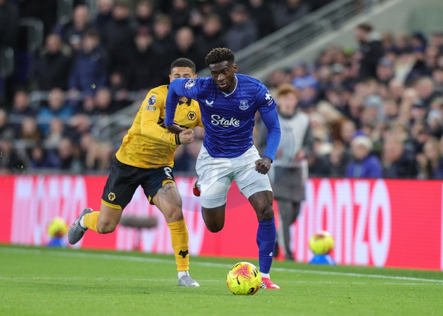 Tim Iroegbunam of Everton breaks with the ball during the Premier League match Everton vs Wolverhampton Wanderers at Hill Dickinson Stadium, Liverpool, United Kingdom, 7th January 2026, Credit:Richard Bierton/News Images / Avalon