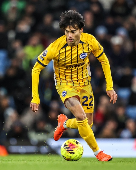 Kaoru Mitoma of Brighton & Hove Albion breaks with the ball during the Premier League match Manchester City vs Brighton and Hove Albion at Etihad Stadium, Manchester, United Kingdom, 7th January 2026, Credit:Ae Cosgrove/News Images / Avalon