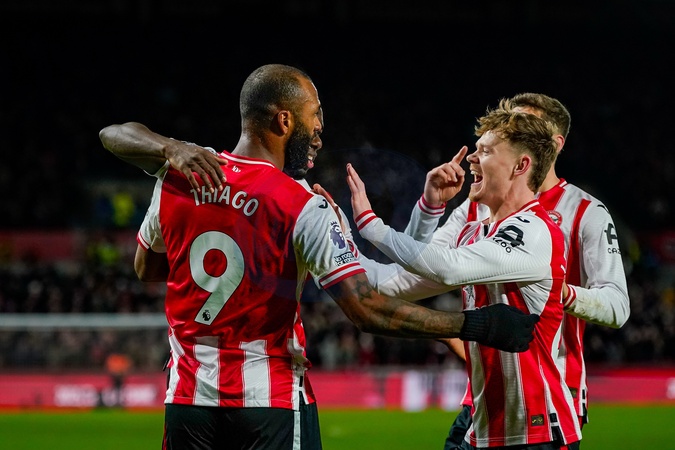 Igor Thiago of Brentford celebrates his goal to make it 1-0 during the Premier League match Brentford vs Sunderland at The Gtech Community Stadium, London, United Kingdom, 7th January 2026, Credit:Maynard Manyowa/News Images / Avalon