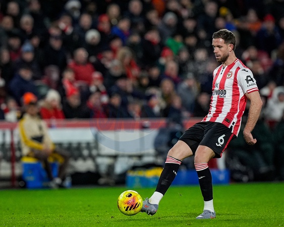 Jordan Henderson of Brentford passes the ball during the Premier League match Brentford vs Sunderland at The Gtech Community Stadium, London, United Kingdom, 7th January 2026, Credit:Maynard Manyowa/News Images / Avalon