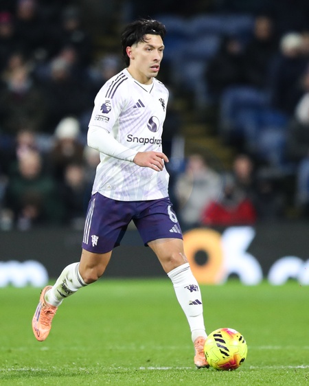 Lisandro Martinez of Manchester United with ball at his feet during the Premier League match Burnley vs Manchester United at Turf Moor, Burnley, United Kingdom, 7th January 2026, Credit:Jorge Horsted/News Images / Avalon