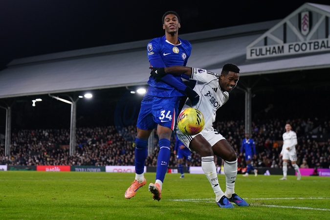 Josh-Kofi Acheampong of Chelsea and Ryan Sessegnon of Fulham during the Premier League match Fulham vs Chelsea at Craven Cottage, London, United Kingdom, 7th January 2026, Credit:Harvey Murphy/News Images / Avalon