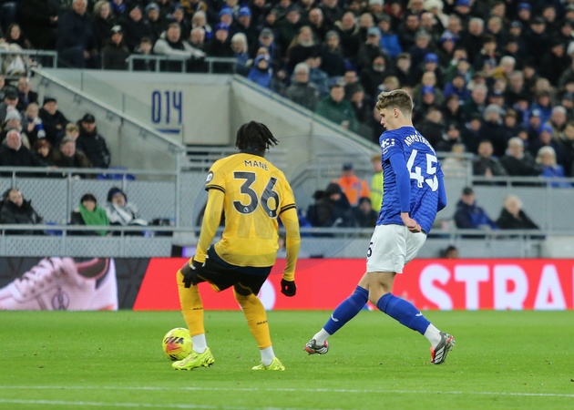Harrison Armstrong of Everton passes the ball during the Premier League match Everton vs Wolverhampton Wanderers at Hill Dickinson Stadium, Liverpool, United Kingdom, 7th January 2026, Credit:Richard Bierton/News Images / Avalon