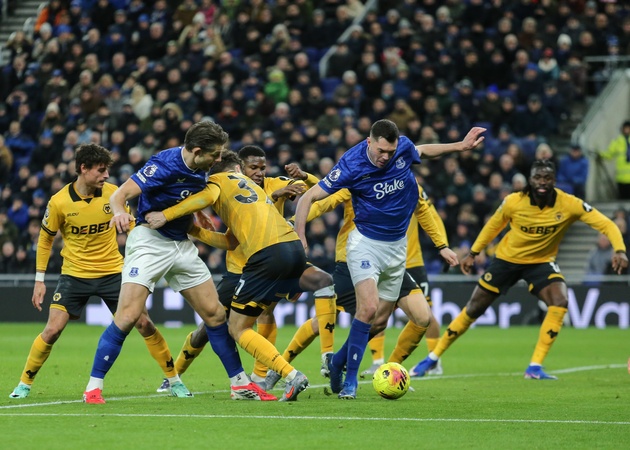 Michael Keane of Everton in action during the Premier League match Everton vs Wolverhampton Wanderers at Hill Dickinson Stadium, Liverpool, United Kingdom, 7th January 2026, Credit:Richard Bierton/News Images / Avalon