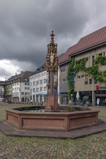 Germany, Freiburg im Breisgau, The Fischbrunnen in Munsterplatz, Credit:Fabio Mazzarella / Avalon