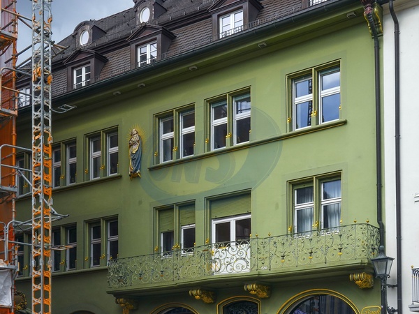 Germany, Freiburg im Breisgau, Virgin Mary and baby Jesus statue hung on a wall., Credit:Fabio Mazzarella / Avalon