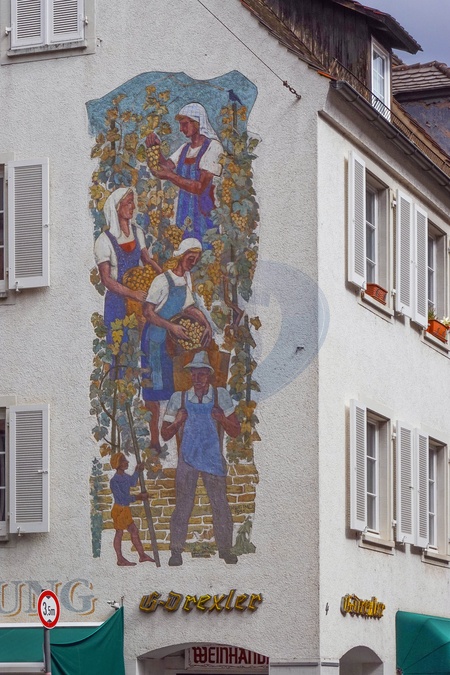 Germany, Freiburg im Breisgau, A Grape Harvest mural in central Freiburg., Credit:Fabio Mazzarella / Avalon