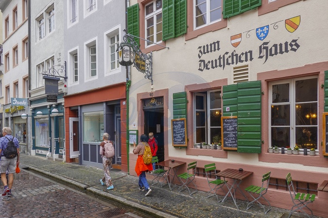 Germany, Freiburg im Breisgau, The historic Gasthaus Zum deutschen Haus Inn, one of Freiburg most famous pub., Credit:Fabio Mazzarella / Avalon