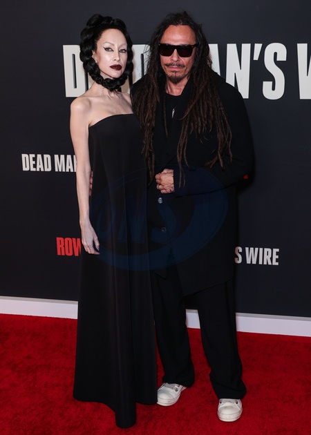 LOS ANGELES, CALIFORNIA, USA - JANUARY 07: Evis Xheneti Shaffer and husband James Shaffer of American nu metal band Korn arrive at the Los Angeles Premiere Of Row K Entertainment's 'Dead Man's Wire' held at AMC The Grove 14 on January 7, 2026 in Los Angeles, California, United States., Credit:Xavier Collin / Avalon