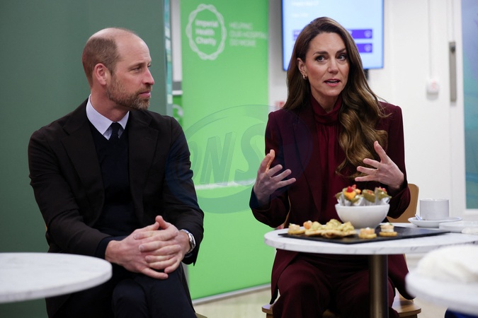Britain's Catherine, Princess of Wales speaks as she meets healthcare staff with Prince William, Prince of Wales during a visit to Charing Cross Hospital, in London, Britain, January 8, 2026., Credit:Isabel Infantes / Avalon