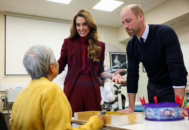 Britain's Prince William, Prince of Wales and Catherine, Princess of Wales speak to a patient at the therapy gym during a visit to Charing Cross Hospital, in London, Britain, January 8, 2026., Credit:Isabel Infantes / Avalon