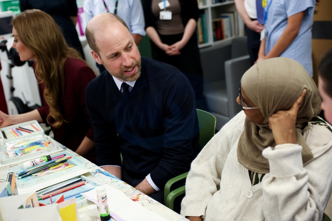 Britain's Prince William, Prince of Wales, speaks to a patient, next to Catherine, Princess of Wales during an arts workshop at Charing Cross Hospital, in London, Britain, January 8, 2026., Credit:Isabel Infantes / Avalon