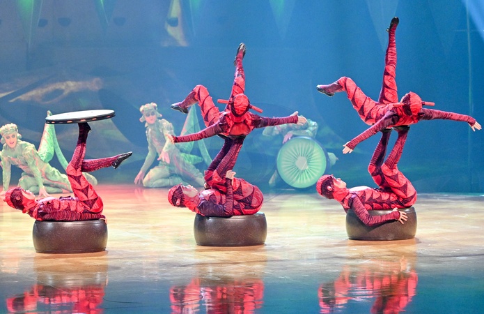 London, UK, 08 January 2026. Foot Juggling (Yue Zhao, Baoyu Zhu, Lulu Zhang, Xingjie Pei, Xin Pei (China) perform during the dress rehearsal of the Cirque du Soleil's production of 'OVO' at the Royal Albert Hall, London, UK. Editorial Use Only., Credit:Lee Floyd / Avalon