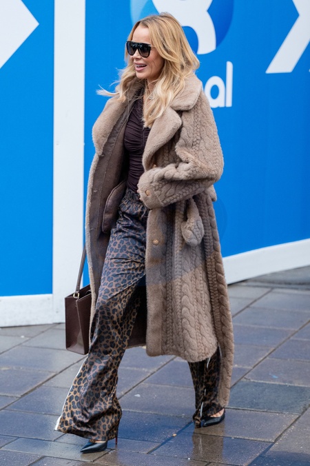 Amanda Holden seen leaving Global Studios, London 9 January 2026 wearing Adidas Originals Wide Leg Satin Joggers, Credit:Robin Pope / Avalon