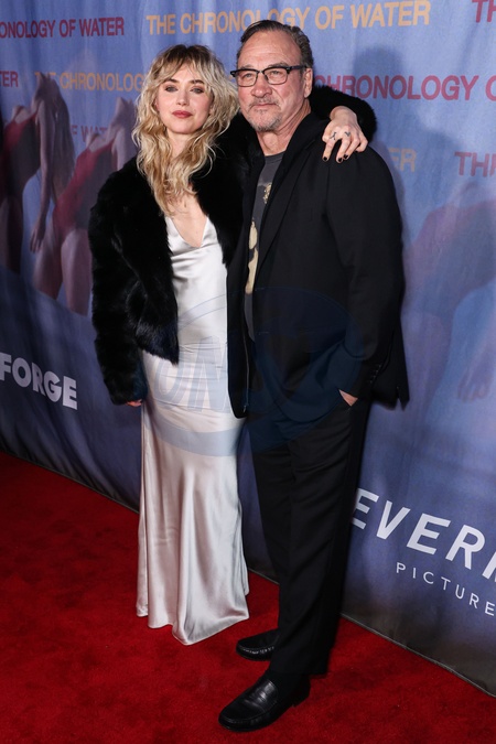 HISTORIC FILIPINOTOWN, LOS ANGELES, CALIFORNIA, USA - JANUARY 08: English actress Imogen Poots and American actor, comedian, singer, musician, producer, writer, and director Jim Belushi arrive at the Los Angeles Premiere Of The Forge's 'The Chronology Of Water' held at 2220 Arts + Archives on January 8, 2026 in Historic Filipinotown, Los Angeles, California, United States., Credit:Xavier Collin / Avalon
