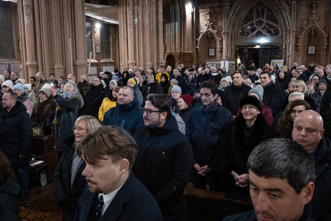 People attend a service marking the transfer of St. Nicholas Church by Ukraine's Culture Ministry to the Religious Community of St. Nicholas Parish of the Roman Catholic Church for free use, in Kyiv, Ukraine, on January 6, 2026., Credit:Danylo Antoniuk / Avalon