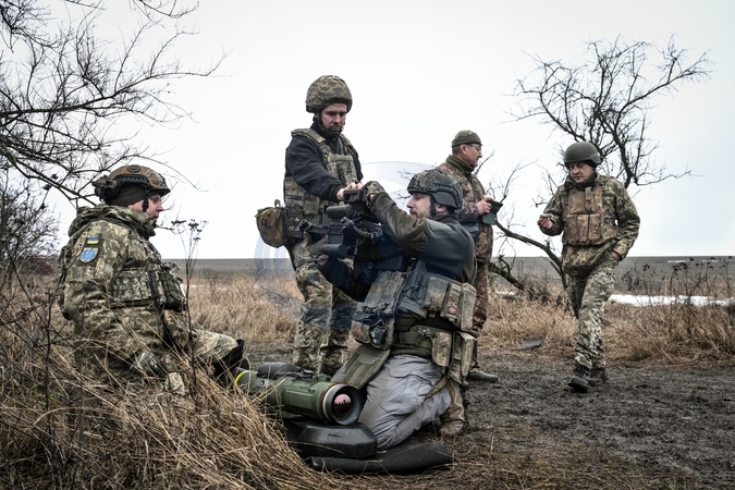 Soldiers participate in professional training sessions to improve the qualifications of ATGM operators from the 65th Separate Mechanised Brigade, Ukraine, on January 7, 2026. Following theoretical instruction and simulator practice, Ukrainian servicemen polished their skills shooting the third-generation Javelin man-portable anti-tank missile system., Credit:Dmytro Smolienko / Avalon