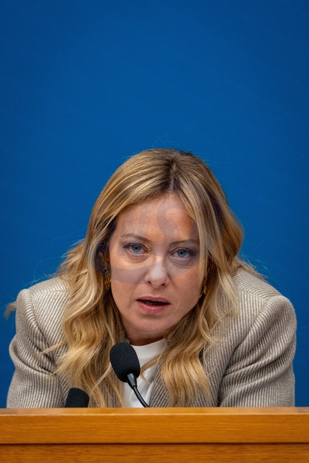 Italian Prime Minister Giorgia Meloni attends the annual press conference at the Chamber of Deputies in Rome, Italy, on 09 January 2026.