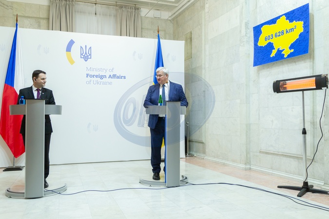 Minister of Foreign Affairs of Ukraine Andrii Sybiha (R) and Deputy Prime Minister, Minister of Foreign Affairs and Minister for the Environment of the Czech Republic Petr Macinka, who is on his first official visit to Ukraine, hold a joint news conference following their meeting, Kyiv, Ukraine, January 9, 2026. The officials discussed a wide range of bilateral issues, including defence cooperation and the continued implementation of the Czech Ammunition Initiative., Credit:Kirill Chubotin / Avalon