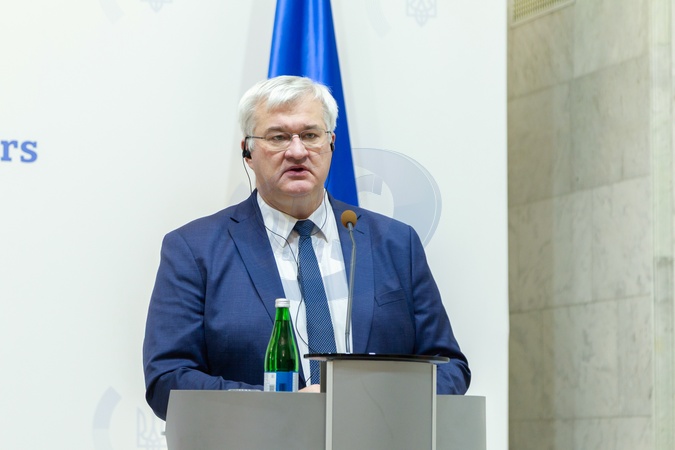 Minister of Foreign Affairs of Ukraine Andrii Sybiha participates in a joint news conference with Deputy Prime Minister, Minister of Foreign Affairs and Minister for the Environment of the Czech Republic Petr Macinka, who is on his first official visit to Ukraine, following their meeting, Kyiv, Ukraine, January 9, 2026. The officials discussed a wide range of bilateral issues, including defence cooperation and the continued implementation of the Czech Ammunition Initiative., Credit:Kirill Chubotin / Avalon