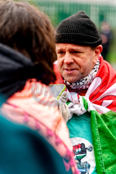 Friday 9th January 2025 Filton24 supporters gather outside Woolwich Crown Court as the first trial of the Filton24 case came to a close. Laleh Khalili Iranian American Professor of Gulf Studies spoke and Anna lead singer from HAWXX performed., Credit:Aldo Ciarrocchi / Avalon