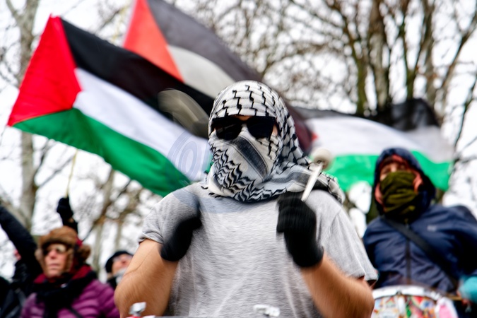 Friday 9th January 2025 Filton24 supporters gather outside Woolwich Crown Court as the first trial of the Filton24 case came to a close. Laleh Khalili Iranian American Professor of Gulf Studies spoke and Anna lead singer from HAWXX performed., Credit:Aldo Ciarrocchi / Avalon