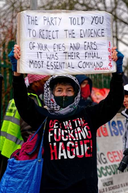 Friday 9th January 2025 Filton24 supporters gather outside Woolwich Crown Court as the first trial of the Filton24 case came to a close. Laleh Khalili Iranian American Professor of Gulf Studies spoke and Anna lead singer from HAWXX performed., Credit:Aldo Ciarrocchi / Avalon