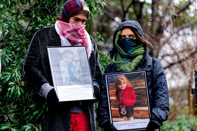 Friday 9th January 2025 Filton24 supporters gather outside Woolwich Crown Court as the first trial of the Filton24 case came to a close. Laleh Khalili Iranian American Professor of Gulf Studies spoke and Anna lead singer from HAWXX performed., Credit:Aldo Ciarrocchi / Avalon