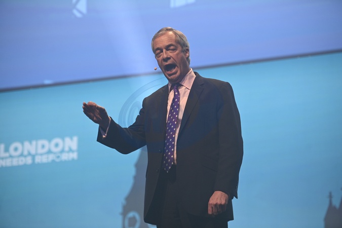 Nigel Farage speaks at a Reform UK rally, ICC Auditorium, London, UK, 09 January 2026., Credit:Justin Ng / Avalon