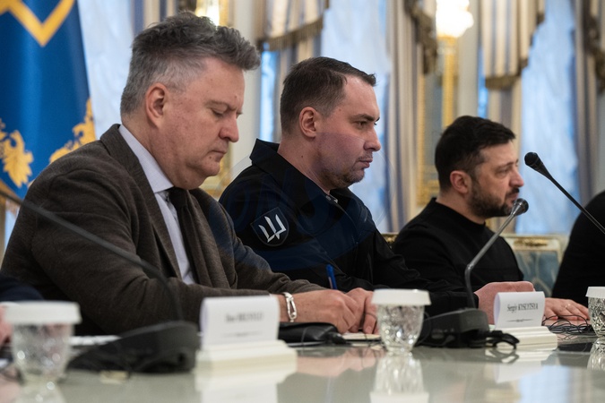 First Deputy Head of the Office of the President of Ukraine Sergiy Kyslytsya and Head of the Office of the President of Ukraine Kyrylo Budanov (L to R) attend a meeting of President of Ukraine Volodymyr Zelenskyy and UK Secretary of State for Defence John Healey in Kyiv, Ukraine, on January 9, 2026., Credit:Danylo Antoniuk / Avalon
