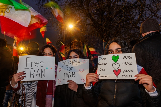 Iranian Embassy, London, UK. 9th January 2026.In a response to exiled Crown Prince Reza Pahlavi's call to take to the streets, members of the Iranian community gather in front of the Iranian embassy in London in a show of unity and solidarity with the protestors in Iran.The majority of Iranians are calling for a free and democratic Iran and the return of Pahlavi., Credit:Photo by Amanda Rose / Avalon
