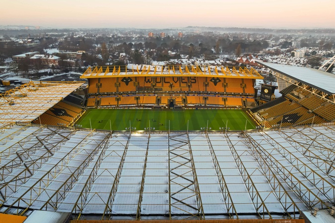 An aerial view of the Molineux Stadium before the Emirates FA Cup Third Round match Wolverhampton Wanderers vs Shrewsbury Town at Molineux, Wolverhampton, United Kingdom, 10th January 2026, Credit:Euan Manning/News Images / Avalon