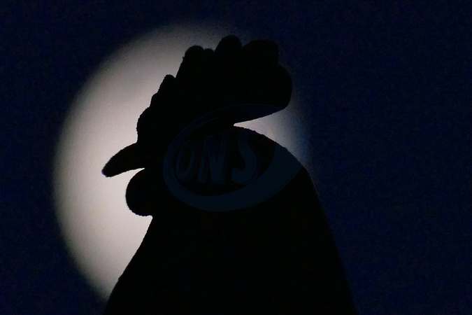The waning gibbous moon sets in the cold early morning skies., Credit:Geoffrey Swaine / Avalon
