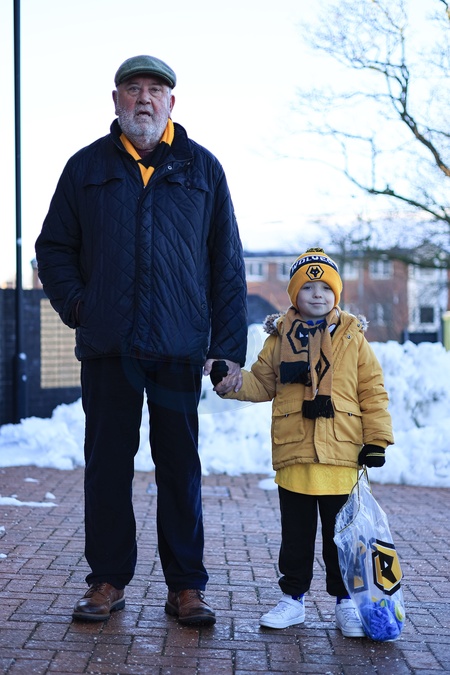 A Young fan and his grandfather before the Emirates FA Cup Third Round match Wolverhampton Wanderers vs Shrewsbury Town at Molineux, Wolverhampton, United Kingdom, 10th January 2026, Credit:Euan Manning/News Images / Avalon