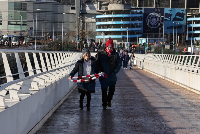 Exeter City fans arrive at the Etihad Stadium during the Emirates FA Cup Third Round match Manchester City vs Exeter City at Etihad Stadium, Manchester, United Kingdom, 10th January 2026, Credit:Mark Cosgrove/News Images / Avalon