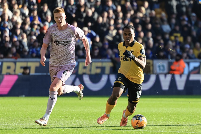 Jhon Arias of Wolverhampton Wanderers scores to make it 2-0 during the Emirates FA Cup Third Round match Wolverhampton Wanderers vs Shrewsbury Town at Molineux, Wolverhampton, United Kingdom, 10th January 2026, Credit:Euan Manning/News Images / Avalon