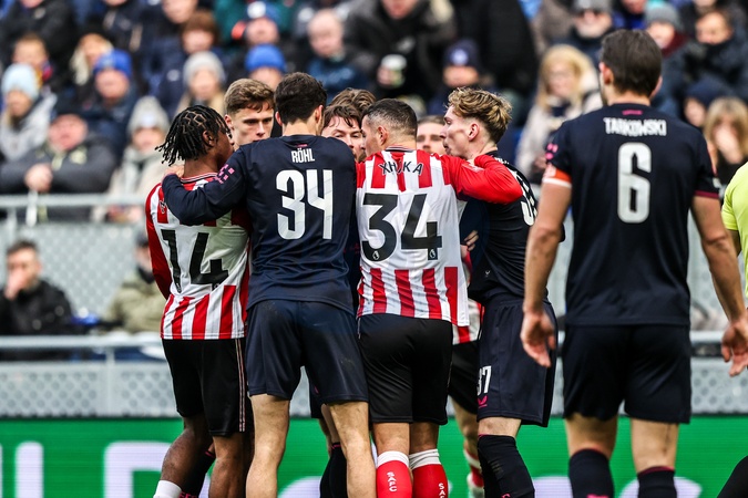 An altercation between the players during the Emirates FA Cup Third Round match Everton vs Sunderland at Hill Dickinson Stadium, Liverpool, United Kingdom, 10th January 2026, Credit:Ae Cosgrove/News Images / Avalon