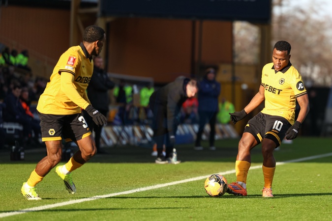 Jhon Arias of Wolverhampton Wanderers passes the ball during the Emirates FA Cup Third Round match Wolverhampton Wanderers vs Shrewsbury Town at Molineux, Wolverhampton, United Kingdom, 10th January 2026, Credit:Euan Manning/News Images / Avalon