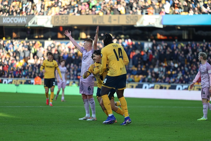 Rodrigo Gomes of Wolverhampton Wanderers scores to make it 5-1 during the Emirates FA Cup Third Round match Wolverhampton Wanderers vs Shrewsbury Town at Molineux, Wolverhampton, United Kingdom, 10th January 2026, Credit:Euan Manning/News Images / Avalon