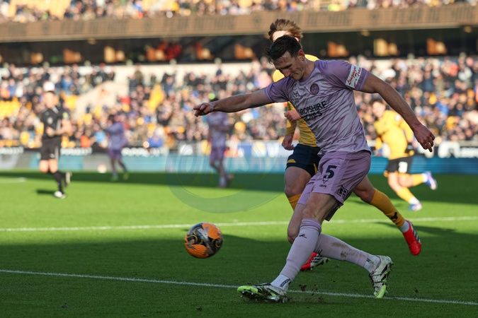 William Boyle of Shrewsbury Town with the ball during the Emirates FA Cup Third Round match Wolverhampton Wanderers vs Shrewsbury Town at Molineux, Wolverhampton, United Kingdom, 10th January 2026, Credit:Euan Manning/News Images / Avalon
