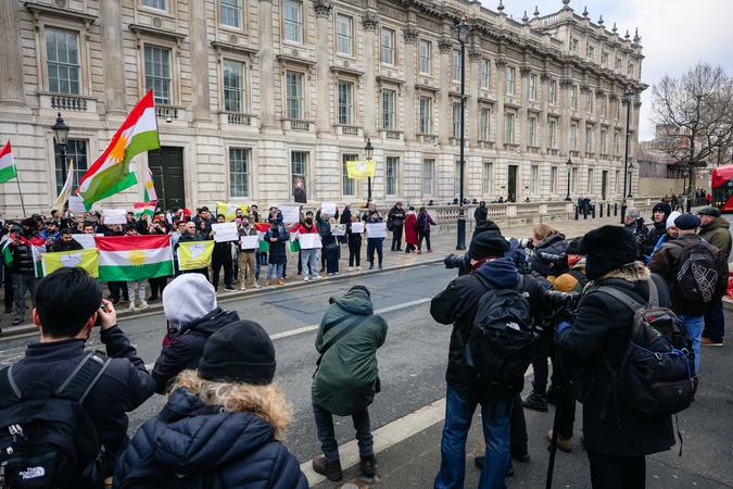 Protest against Syrian attacks on Kurds in Aleppo outside Downing Street in London, UK, on 10 January 2026