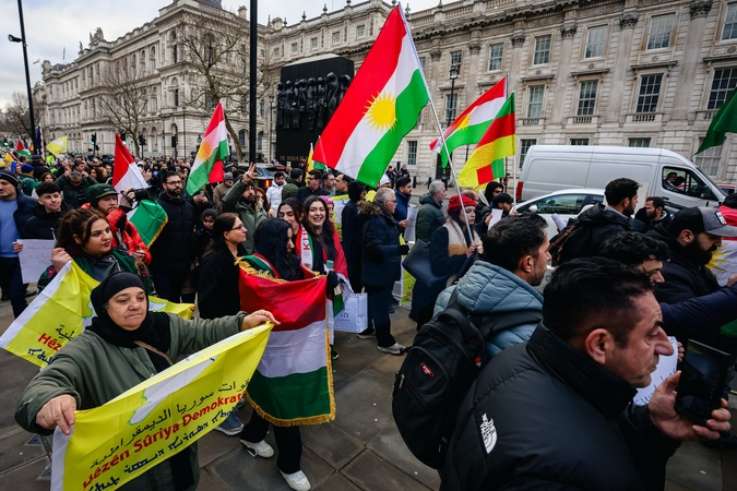 Protest against Syrian attacks on Kurds in Aleppo outside Downing Street in London, UK, on 10 January 2026