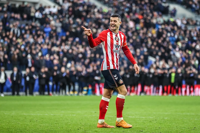 GranitXhaka of Sunderland celebrates towards the Everton fans after scoring his penalty during the Emirates FA Cup Third Round match Everton vs Sunderland at Hill Dickinson Stadium, Liverpool, United Kingdom, 10th January 2026, Credit:Ae Cosgrove/News Images / Avalon