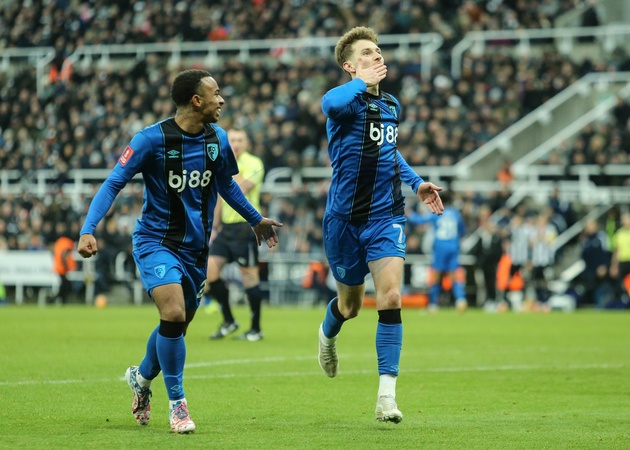 David Brooks of Bournemouth celebrates his goal to make it 1-2 during the Emirates FA Cup Third Round match Newcastle United vs Bournemouth at St. James's Park, Newcastle, United Kingdom, 10th January 2026, Credit:Richard Bierton/News Images / Avalon