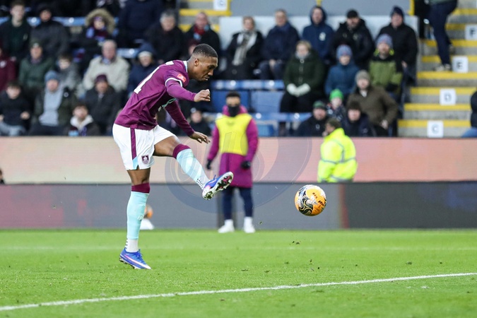 Jaidon Anthony of Burnley shoots and scores to make it 3-0 during the Emirates FA Cup Third Round match Burnley vs Millwall at Turf Moor, Burnley, United Kingdom, 10th January 2026, Credit:Jorge Horsted/News Images / Avalon
