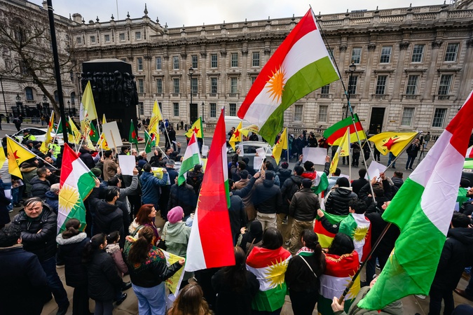 Protest against Syrian attacks on Kurds in Aleppo outside Downing Street in London, UK, on 10 January 2026